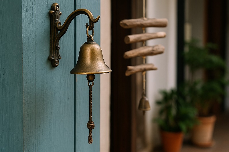 和風建築や古民家風の家には、陶器や真鍮のアンティーク調ベルがよく似合います。繊細な彫刻や釉薬の質感が、和の落ち着いた雰囲気に調和します。
