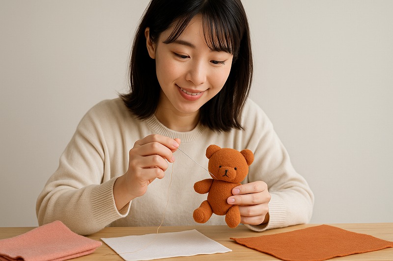 たとえば、耳やしっぽ部分を少し起毛感のある生地に変えると立体感が出ますし、淡い色を組み合わせることでやさしい印象に仕上がります。余った切れ端は、ミニクッションやキーホルダー用の小物パーツとしても再利用できます。
