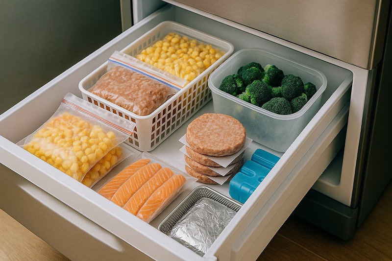こうした代用品を取り入れることで、オリジナルの収納スタイルが作れ、より快適な冷凍庫に仕上がります。