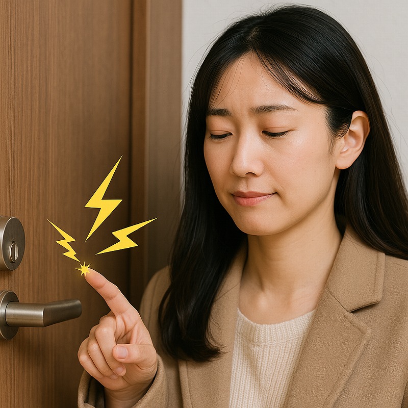 冬になると、ドアノブを触った瞬間に「パチッ」と痛い静電気に悩まされる方は多いですよね。特に乾燥する季節は、ちょっとした動きでも体が帯電しやすく、日常のストレスになることもあります。