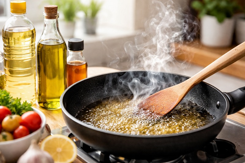 一方、高温になると油の分解が急に進み、煙が出やすくなります。料理の多くは、中温までを意識すると失敗しにくくなります。