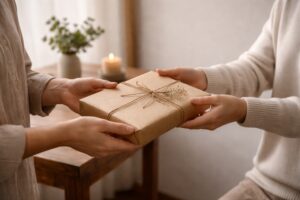 ラッピングは凝りすぎなくても構いませんが、清潔感のある包装と簡単なメッセージがあるだけで印象は大きく変わります。「あなたを思って選びました」という気持ちが伝わることが大切です。