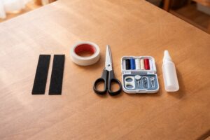 これだけでも補修は可能ですが、選び方や使い方によって仕上がりのきれいさや耐久性が変わります。面ファスナーは、できるだけ元のベルトと同じ幅・厚みに近いものを選ぶと違和感なく仕上がります。両面テープは「布対応」や「強力タイプ」と書かれているものを選ぶと安心です。はさみは先が細めのものだと細かいカットがしやすくなります。