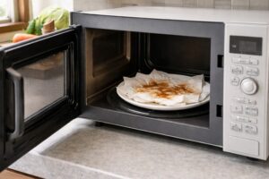 電子レンジでも長時間の加熱や高出力での使用は避けましょう。乾燥した状態で加熱するとリスクが高まります。加熱が必要な場面では、クッキングシートや電子レンジ対応と明記された製品を使うのが安心です。