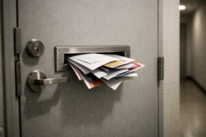 外から郵便物が見える状態では、「数日間取り出されていない=留守」と判断され、不審者のターゲットになりやすくなります。こうした状態は空き巣や悪質なセールスの標的になるだけでなく、郵便物の種類や量から居住者の生活リズムや家族構成まで推測されてしまう危険もあります。